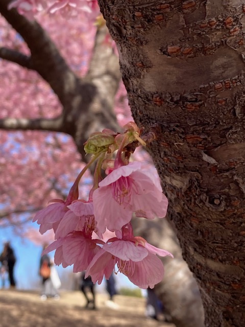 待ちに待った春がやってきました。まだまだ寒い日もありますが、美しい花々があちこちに甘い香りを漂わせ始めました。数日猛烈な赤城おろしが吹いていましたから、もう散ってしまったかなと心配していましたが、この日は素晴らしい快晴。風も無く穏やかなお花見日和でした。この桜は『河津さくら』、ソメイヨシノより早く咲いて、花の色も濃いピンク色。この花を見ると春が来たんだな~とホットします。我が家の庭のサクランボの花芽もだいぶ膨らみ、一週間もすると咲きそうです。そしてハクレン・枝垂れ桜・ソメイヨシノやレンギョウ・・・・。春爛漫がもうすぐ。忙しくなります。